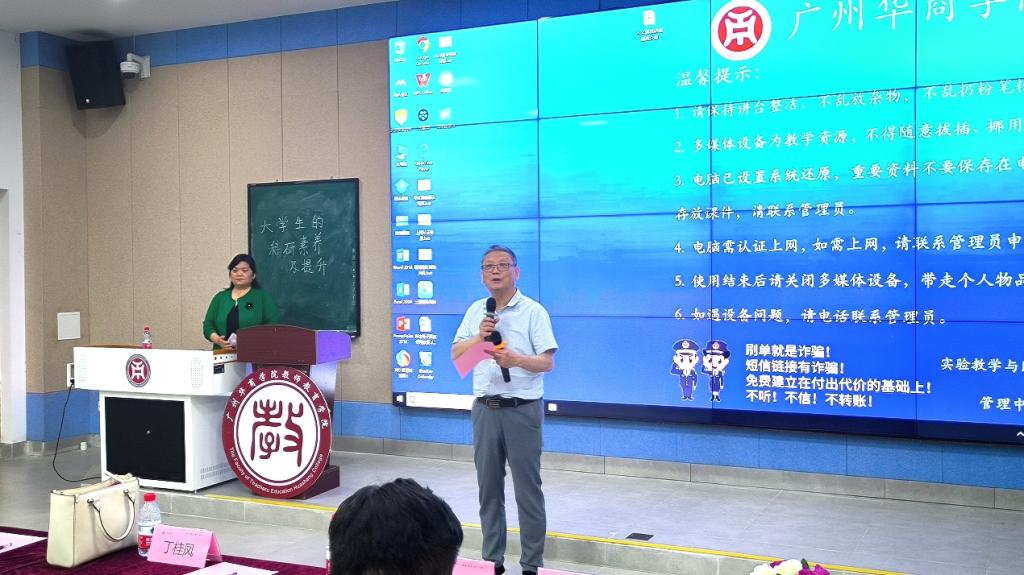 为进一步帮助同学们夯实学术基础、增强学术规范和学术道德意识,全面提升科研素养和科研思维水准,教师教育学院团委学生会于2023年4月20日和2023年4月21日分别在增城校区和四会校区举办了以“大学生的科研素养及提升”为主题的讲座。莅临本次讲座的嘉宾有张博副院长、谭建生副院长、丁桂凤教授、安洁老师和江庆基老师,本次讲座的主讲人为丁桂凤教授,讲座由安洁老师主持。