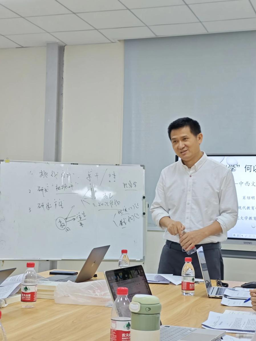 2024年4月23日下午,教师教育学院在广州校区举办了第四期青年教师学术沙龙,邀请到华南师范大学教育科学学院教授、博士生导师肖绍明教授担任主讲人。本次沙龙的主题是《“学”何以可能 ——中西文化中的“学”本体论》,活动由教师教育学院副院长安洁博士主持。